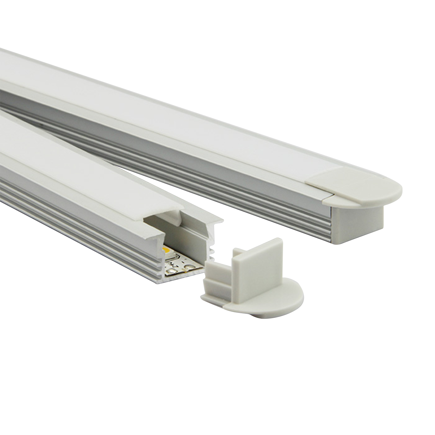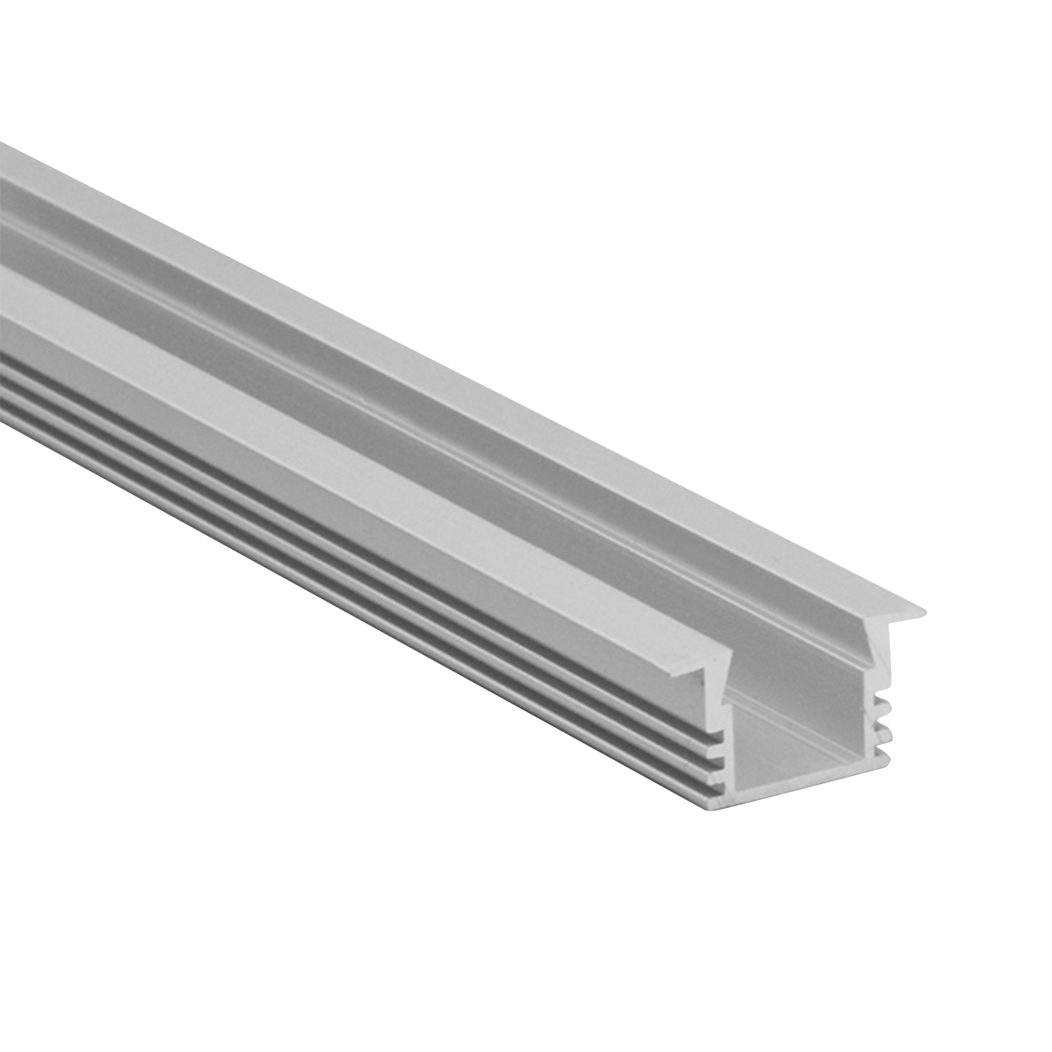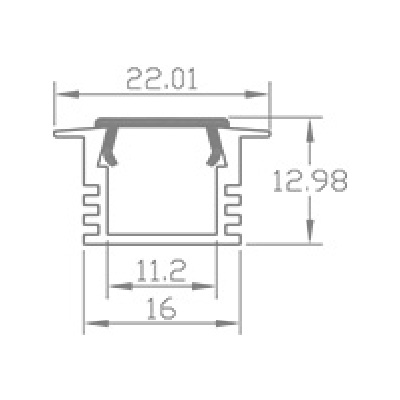 Lavtbyggende aluminiumsprofil for innfelt montering. Brukes både til direkte og indirekte belysning. Leveres med opal avdekning og endestykker.