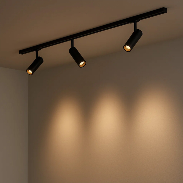 Spottene kan vinkles opptil 90 grader og roteres 350 grader etter ønske, og beveges frem og tilbake på skinnen for mest mulig fleksibel lysspredning. Selve spotlighten har en lengde på 22 cm og en diameter på 60mm.