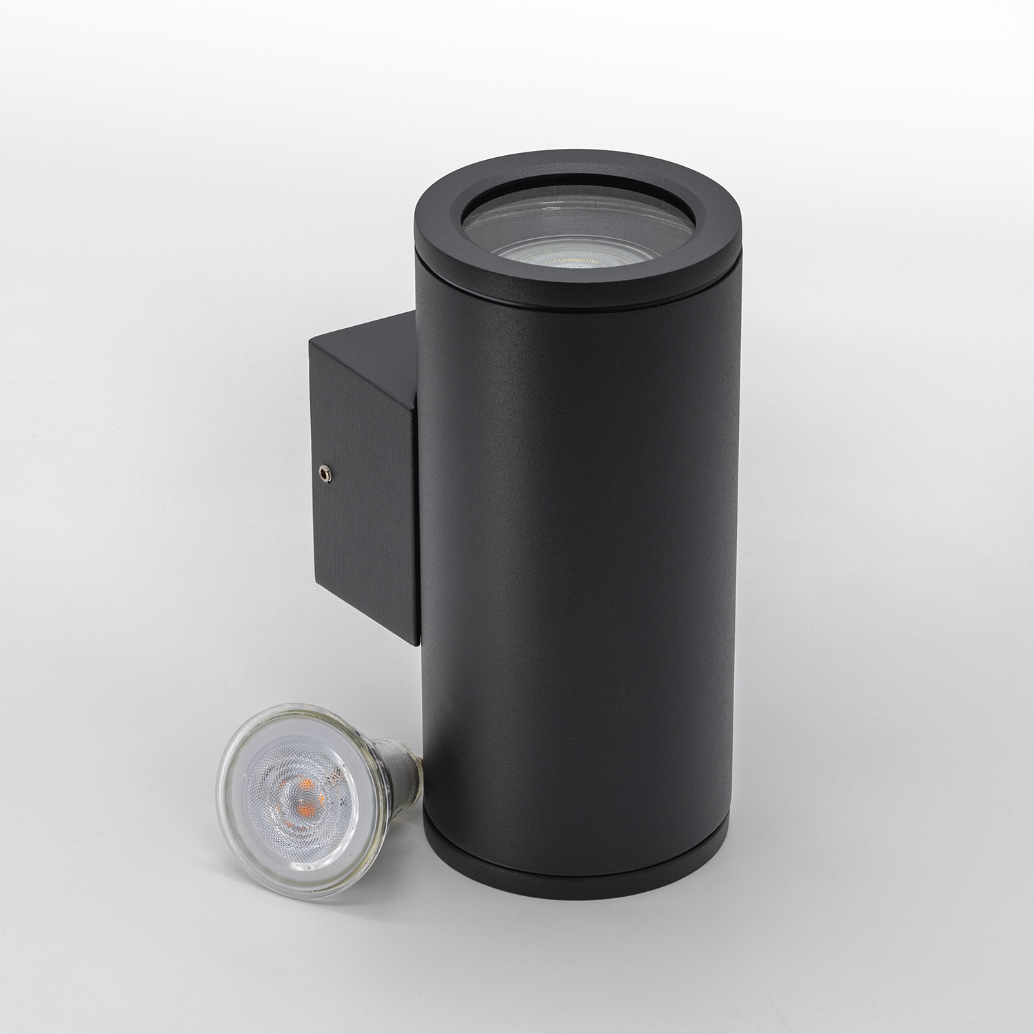 Opplev den moderne elegansen og funksjonaliteten til Gemma GU10 Up&Down utelampe i mørk grå farge. Den sylinderformede vegglampen lyser både opp og ned og er perfekt egnet for å belyse innganger, fasader og utendørsarealer på hytter og boliger. Med en klar diffuser og solid IP54 beskyttelse, skaper Gemma GU10 en stemningsfull atmosfære i ethvert uterom.