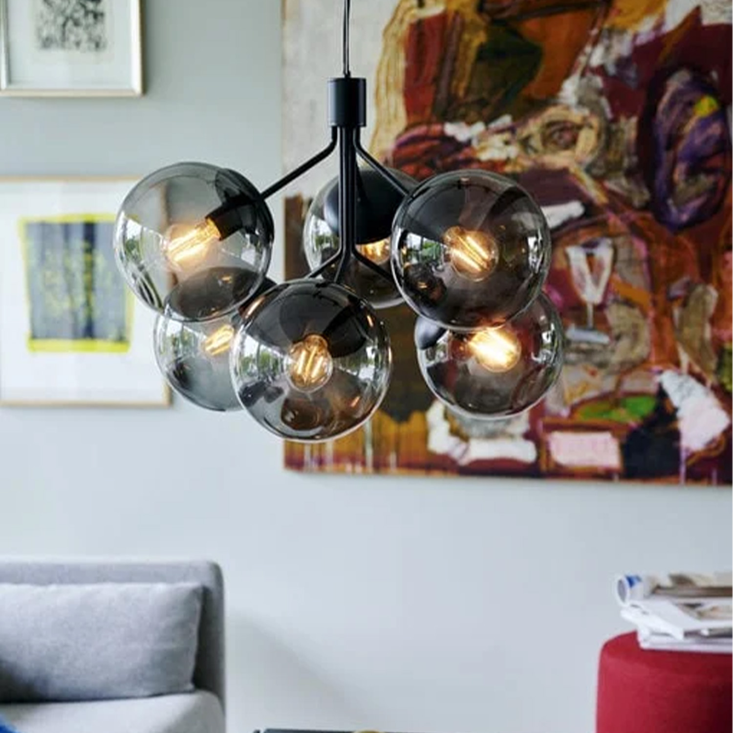 Ivona representerer en innovativ reinterpretasjon av den tradisjonelle lysekronen, utfordrende konvensjonelle ideer med sitt organisk moderne utseende. Lampen utmerker seg med sin lysutstråling fra flere elegante glasskuler, som tilfører en moderne og luksuriøs følelse. Kombinasjonen av messing og opalglass bidrar til et både sjarmerende og sofistikert design, ideelt for de som ønsker en distinkt belysningsløsning.