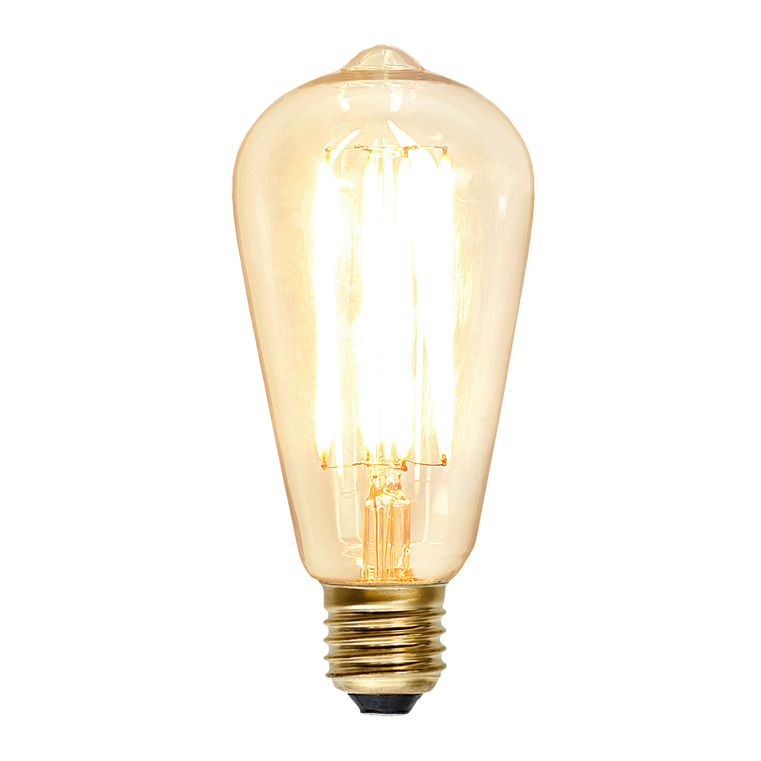 Dekorativ og lekker LED filament lyspære med varmhvitt lys (2200K) som kan benyttes for lamper til både innendørs og utendørs bruk. Pæren har E27 og kan dimmes.