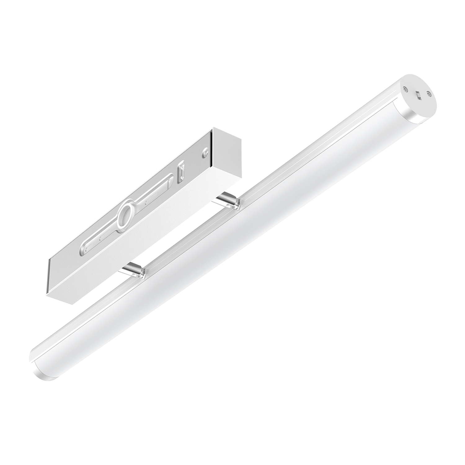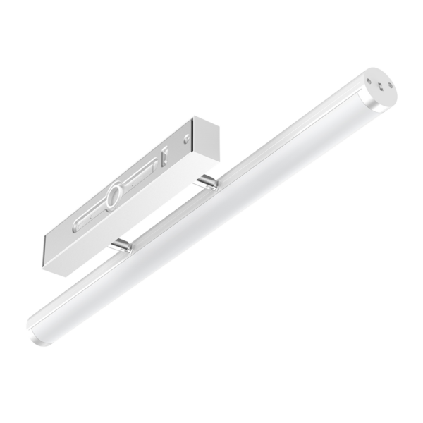 Baderomsarmatur med stikkontakt for montering over speil, eller på vegg. Med en fargetemperatur på 3000K gir denne lampen et behagelig varmhvit lys som fungerer godt på badet. Enkel montering med medfølgende klips og skruer. Skru fast to klips og klikk på plass.