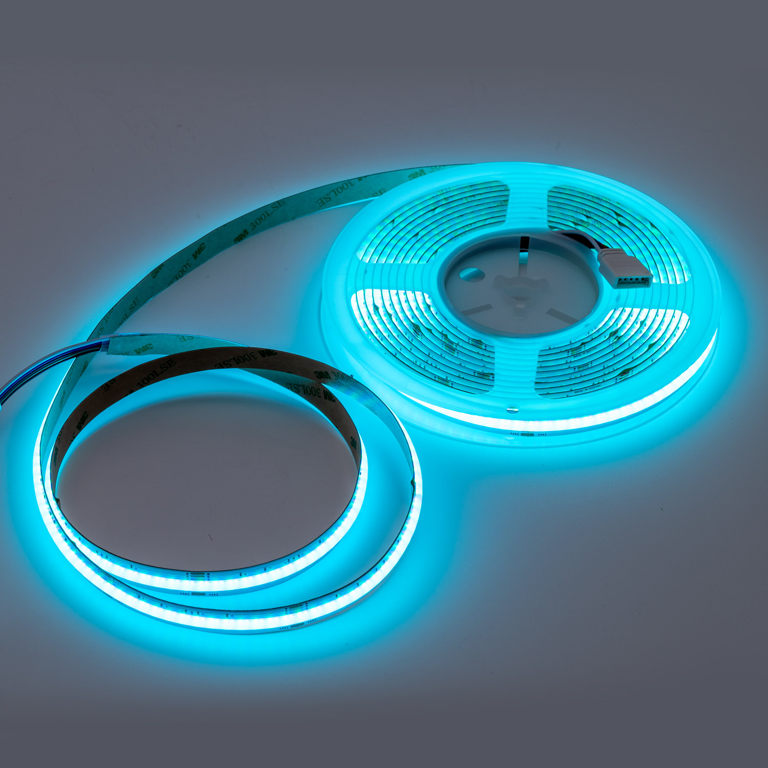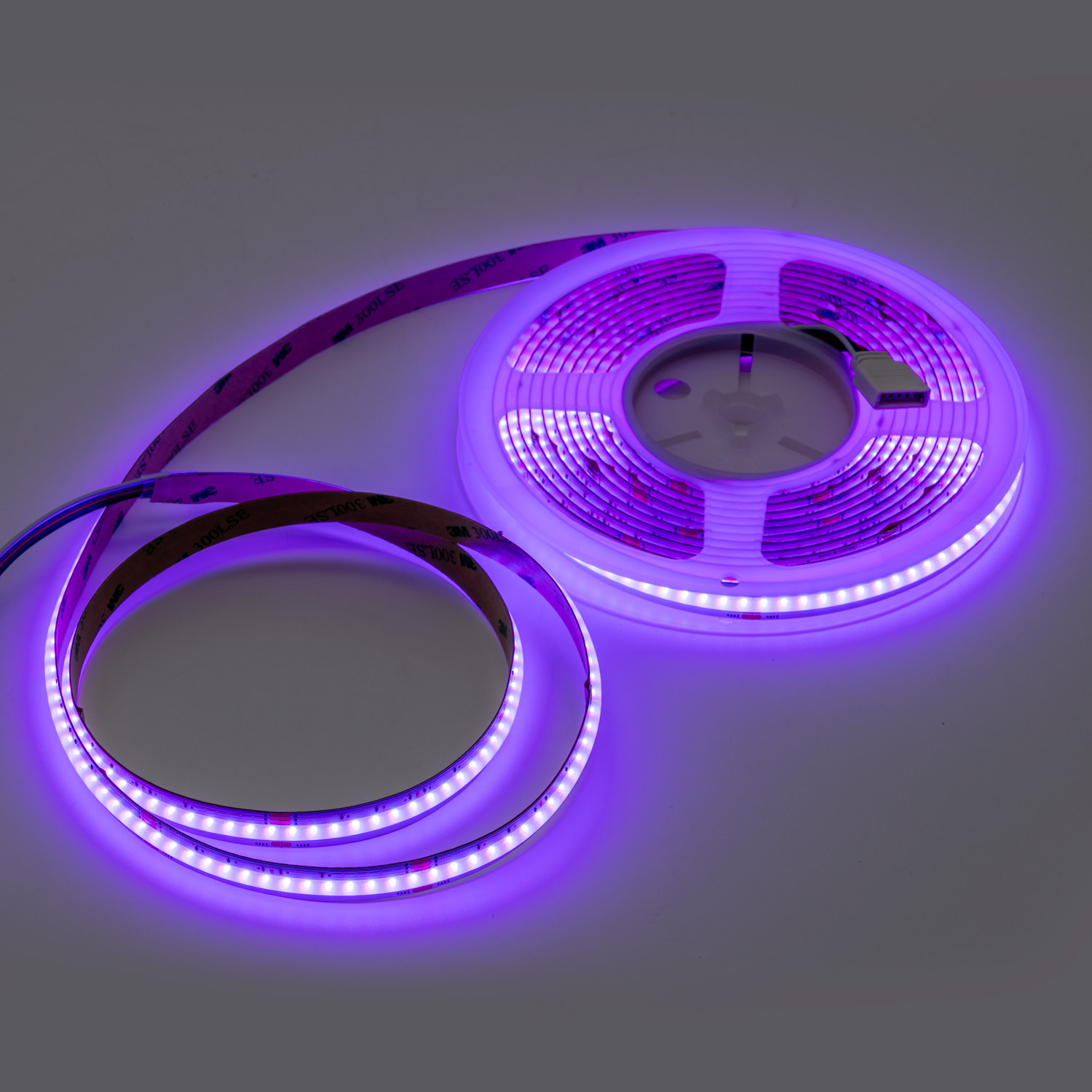 Komplett RGB+W LED-strip med COB-teknologi og fjernkontroll for stemningsfull belysning.