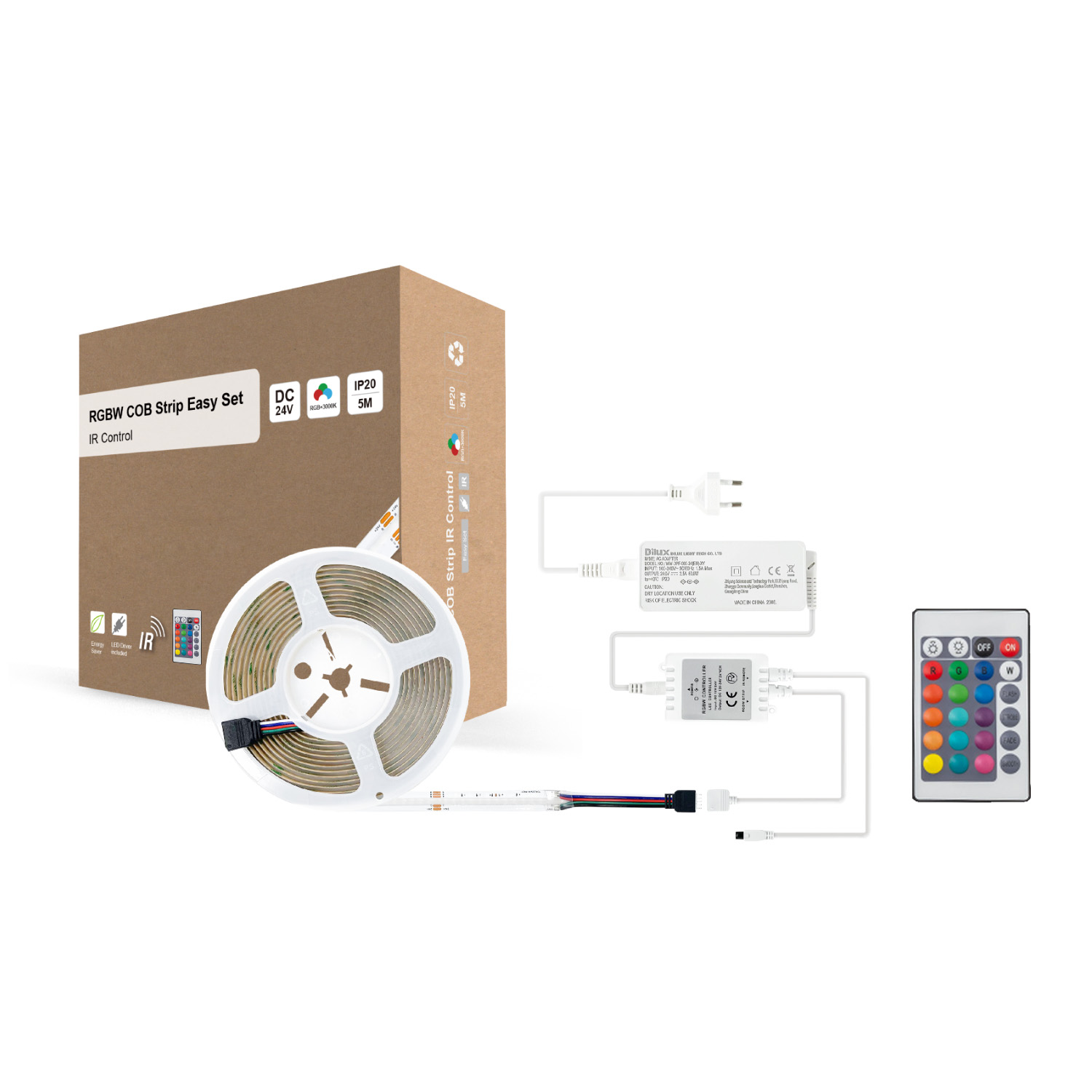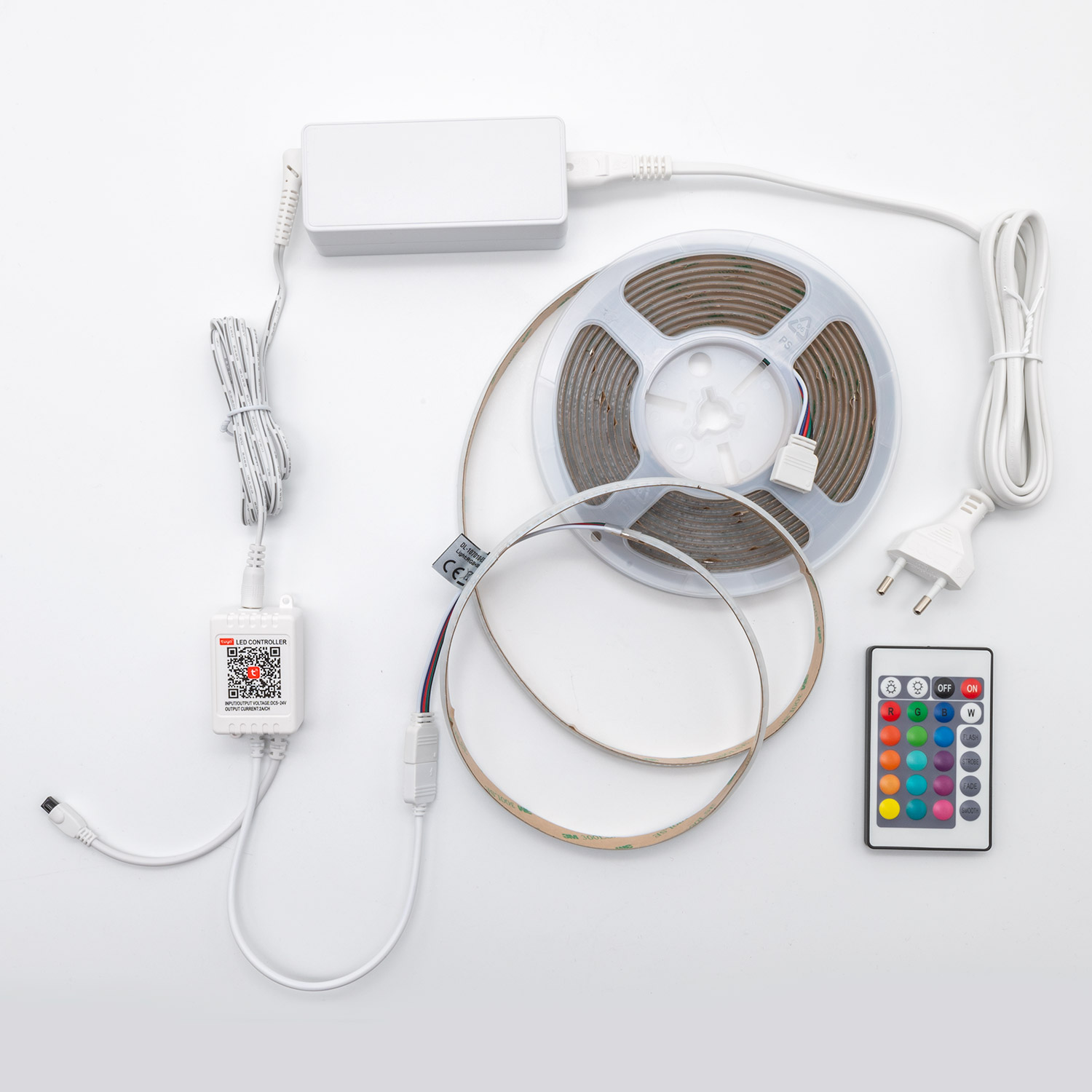 Dette komplette RGB+W LED-stripesettet med COB-teknologi er ideelt for å skape stemningsfull belysning i stuen, på kjøkkenet, soverommet, eller kanskje barnerommet? Med et bredt utvalg av fargerike RGB+W-effekter kan du enkelt tilpasse atmosfæren til enhver anledning. Lyset kan styres via den medfølgende fjernkontrollen eller gjennom en app med Wi-Fi-tilkobling. Monteringen er enkel og krever ikke elektriker. LED-stripen kan vise både regnbuens farger og hvitt lys (RGB+W), noe som gjør den velegnet til både stemningsbelysning og praktisk bruk på arbeidsflater. Fjernkontrollen gir deg også muligheten til å velge flere moduser, som strobe/blink og automatisk fargeveksling.
