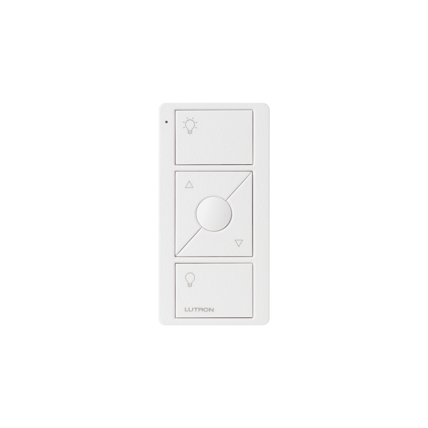 Hvit trådløs fjernkontroll for å kontrollere lys. Juster lysmengden opp/ned og lag scener.